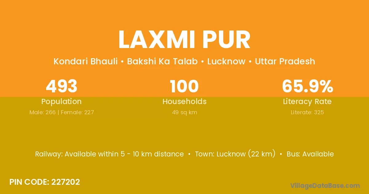 Lucknow (22 km) is the nearest town to Laxmi Pur village for major economic activities and is located approximately 22 km away.