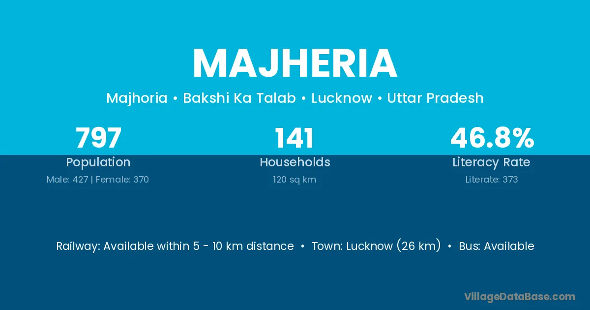 Lucknow (26 km) is the nearest town to Majheria village for major economic activities and is located approximately 26 km away.