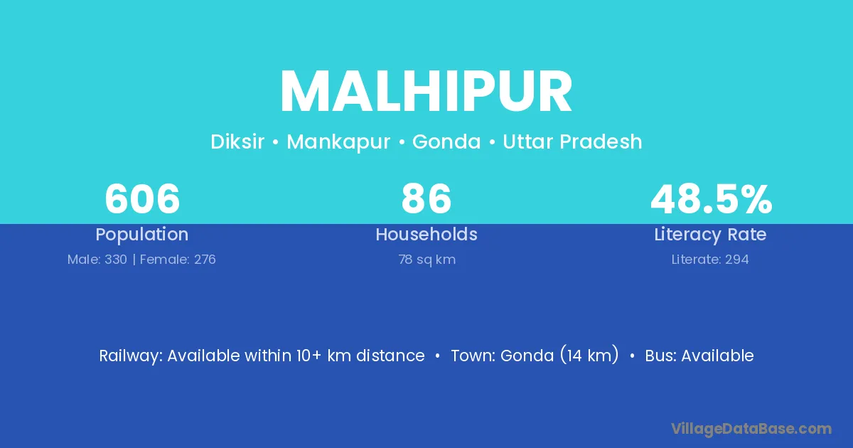 Lucknow (24 km) is the nearest town to Malhipur village for major economic activities and is located approximately 24 km away.