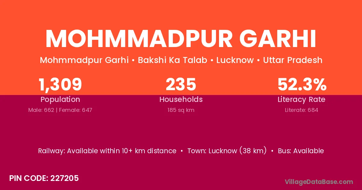 Lucknow (38 km) is the nearest town to Mohmmadpur Garhi village for major economic activities and is located approximately 38 km away.