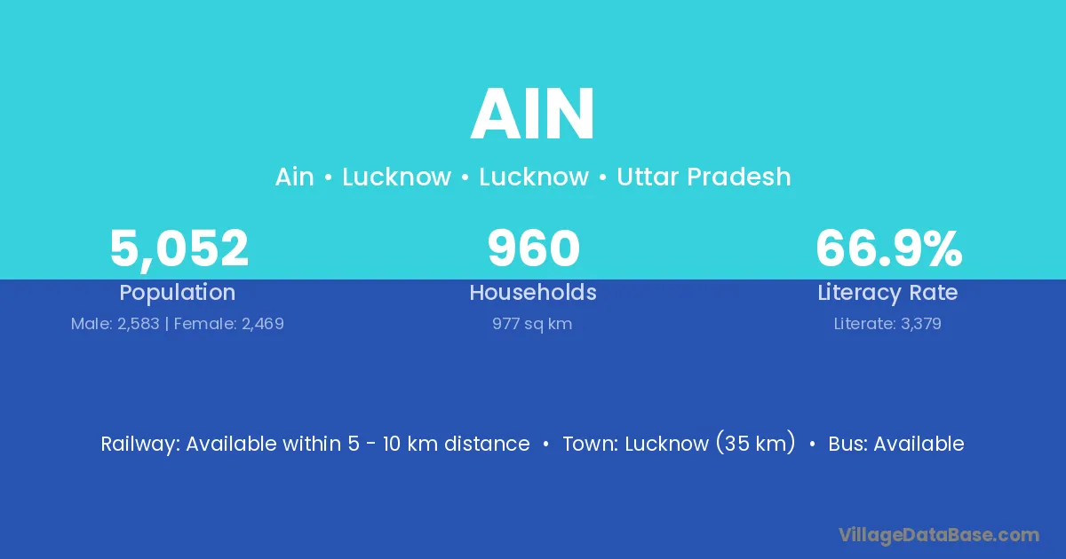 Lucknow (35 km) is the nearest town to Ain village for major economic activities and is located approximately 35 km away.
