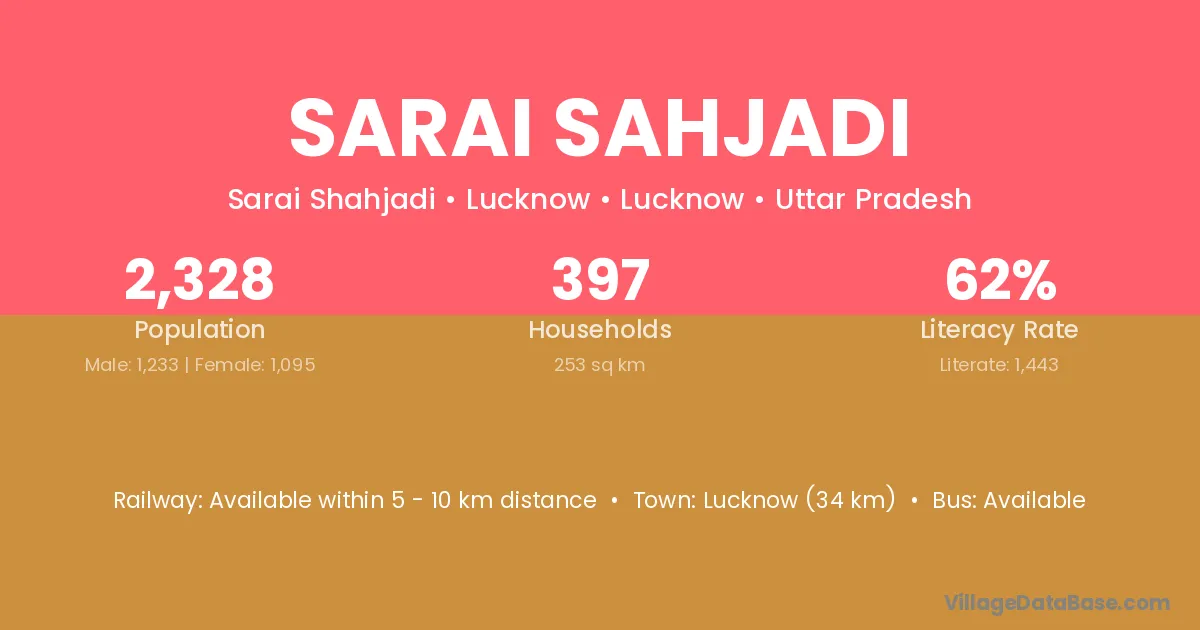 Lucknow (34 km) is the nearest town to Sarai Sahjadi village for major economic activities and is located approximately 34 km away.