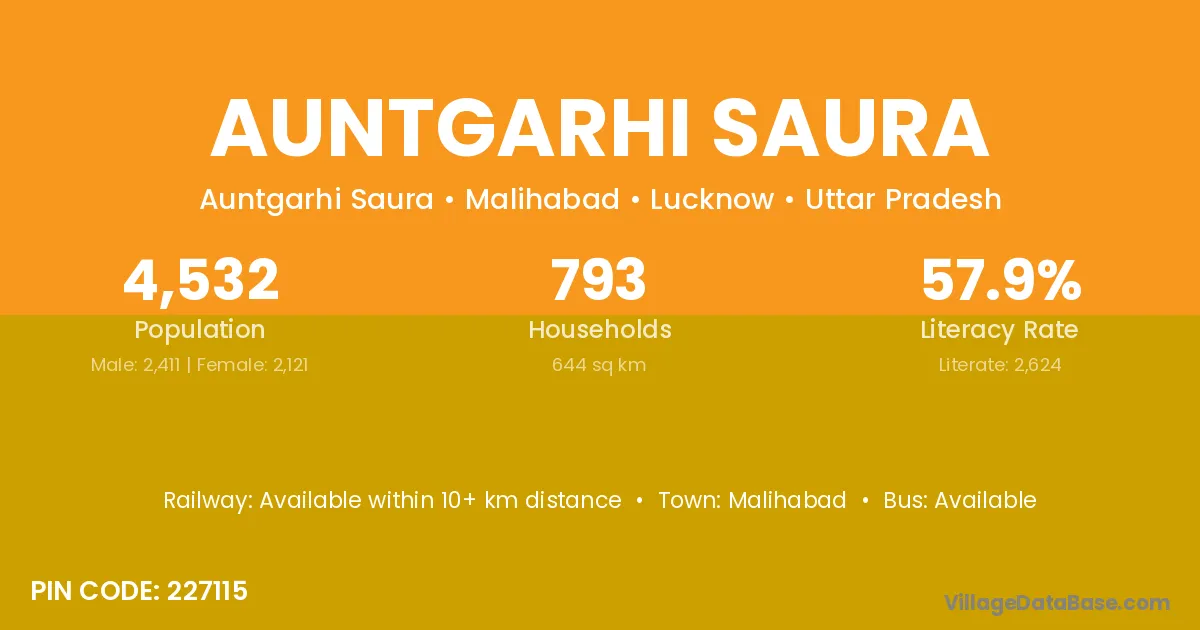 Malihabad is the nearest town to Auntgarhi Saura village for major economic activities