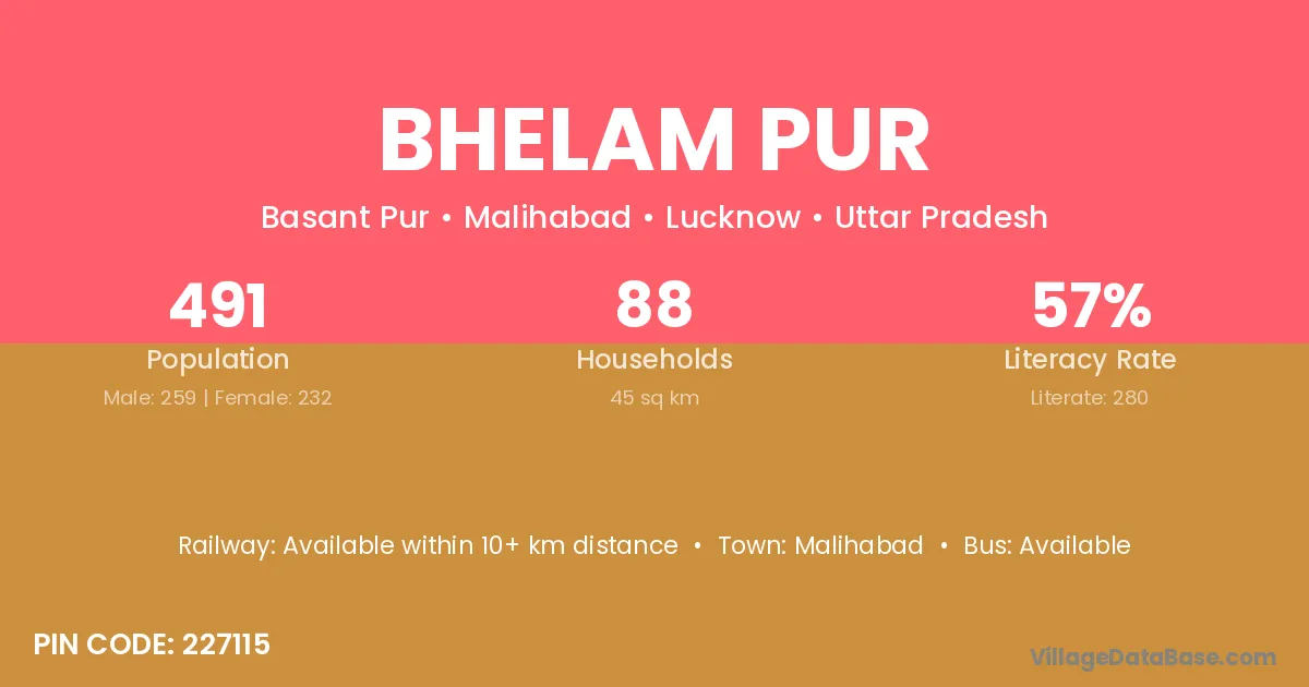Malihabad is the nearest town to Bhelam Pur village for major economic activities