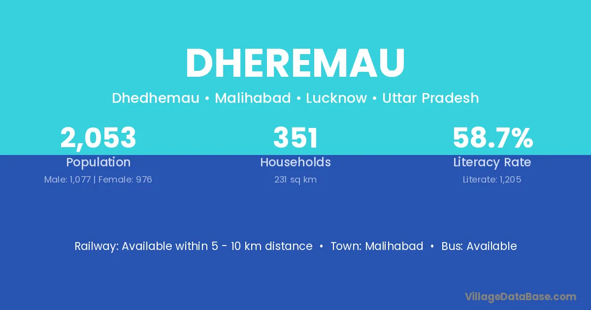 Malihabad is the nearest town to Dheremau village for major economic activities