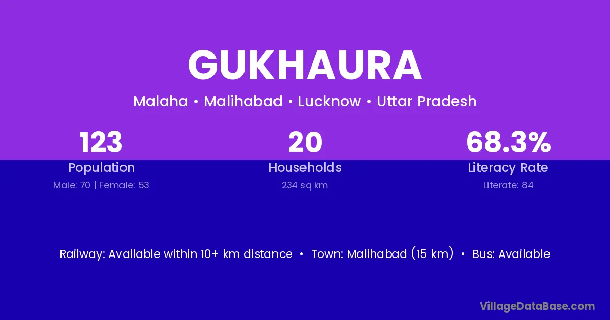 Malihabad (15 km) is the nearest town to Gukhaura village for major economic activities and is located approximately 15 km away.
