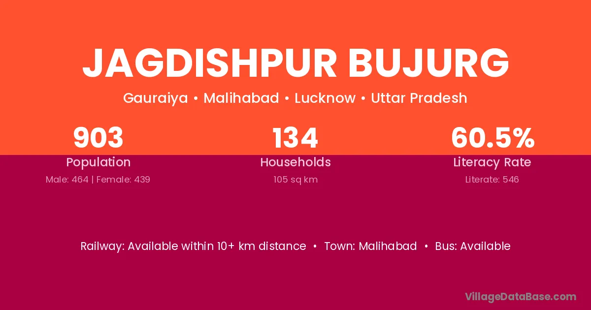 Jagdishpur Bujurg village has a total population of 903 people, of which 464 are males and 439 are females.