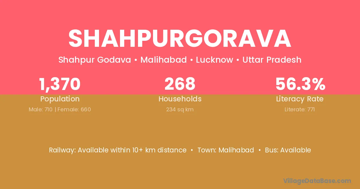 Malihabad is the nearest town to Shahpurgorava village for major economic activities