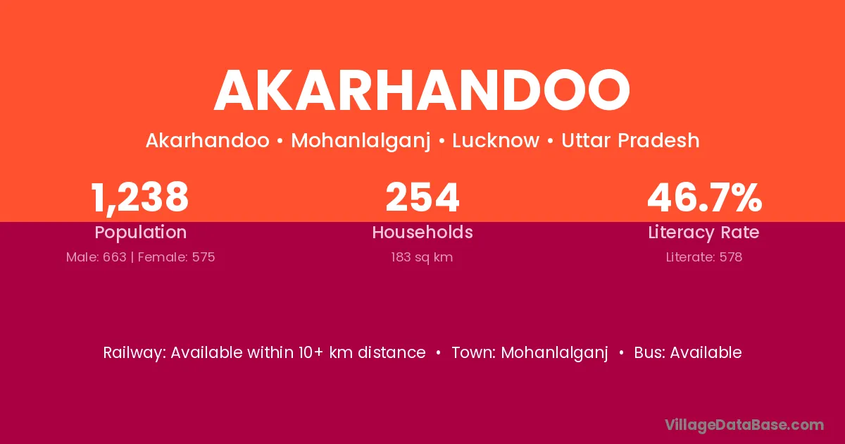 Akarhandoo village has a total population of 1,238 people, of which 663 are males and 575 are females.