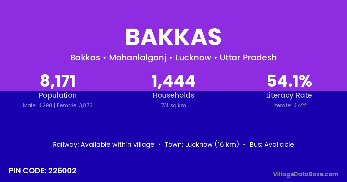 Lucknow (16 km) is the nearest town to Bakkas village for major economic activities and is located approximately 16 km away.