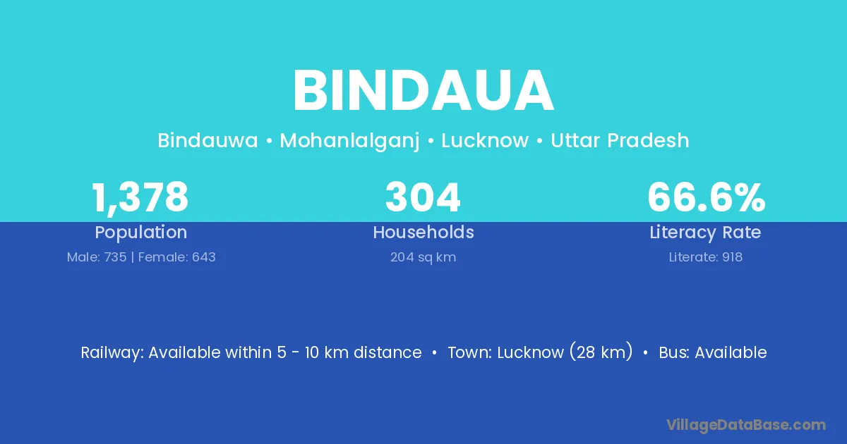 Lucknow (28 km) is the nearest town to Bindaua village for major economic activities and is located approximately 28 km away.