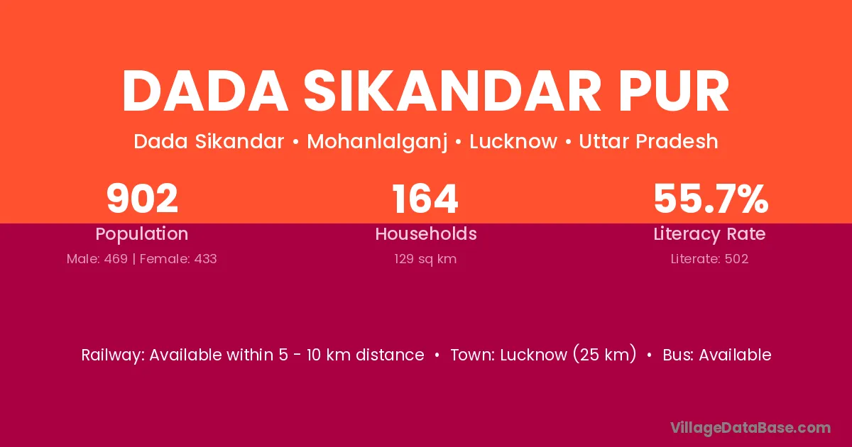 Dada Sikandar Pur village has a total population of 902 people, of which 469 are males and 433 are females.