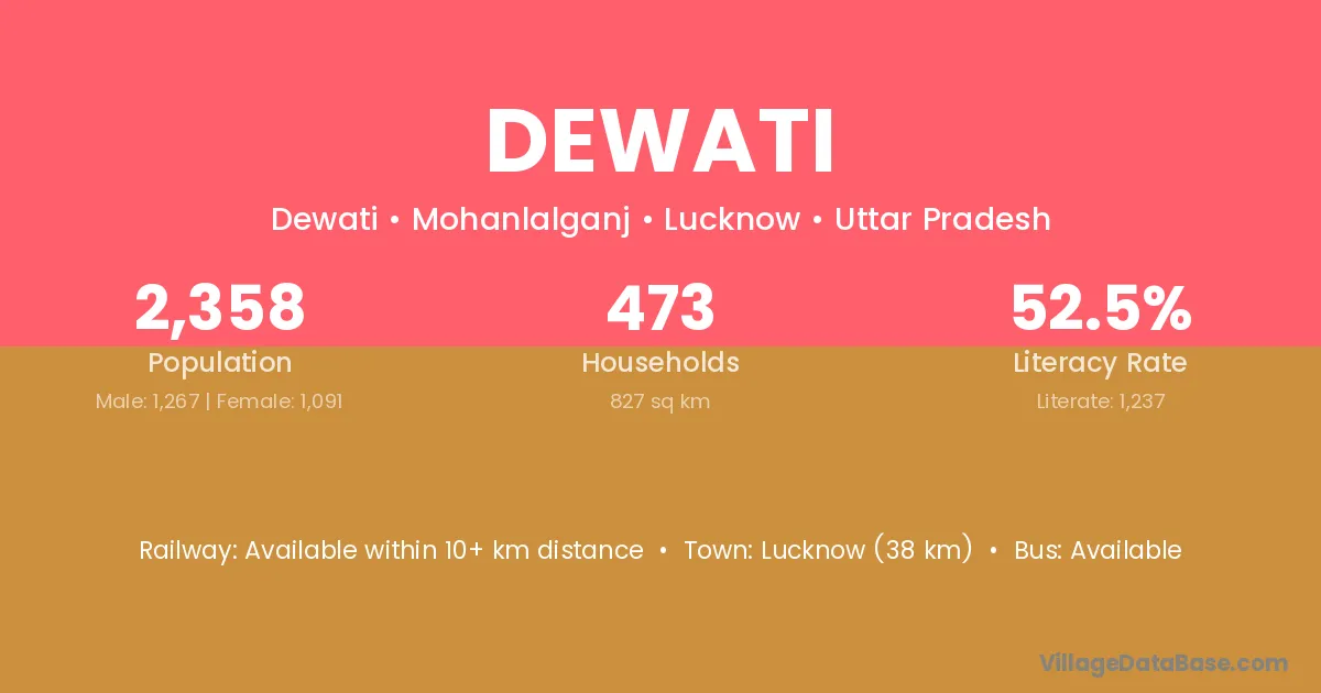 Lucknow (38 km) is the nearest town to Dewati village for major economic activities and is located approximately 38 km away.