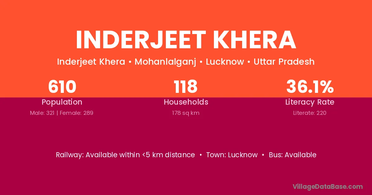Inderjeet Khera village has a total population of 610 people, of which 321 are males and 289 are females.