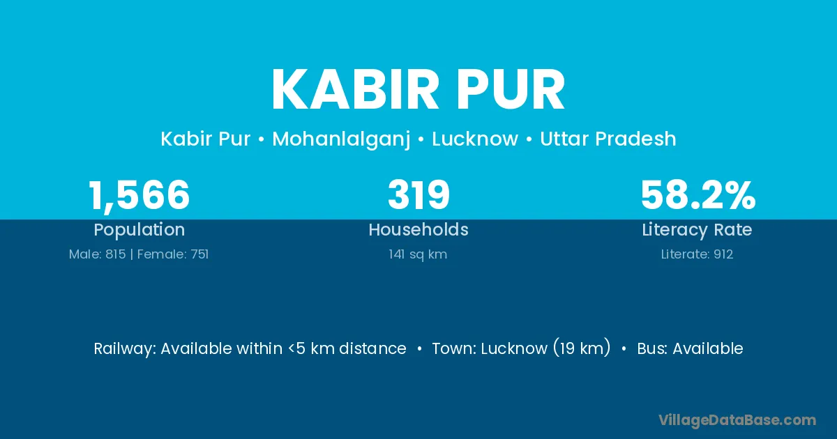 Lucknow (19 km) is the nearest town to Kabir Pur village for major economic activities and is located approximately 19 km away.