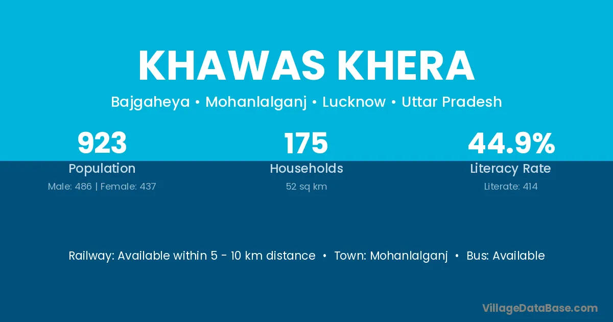Mohanlalganj is the nearest town to Khawas Khera village for major economic activities