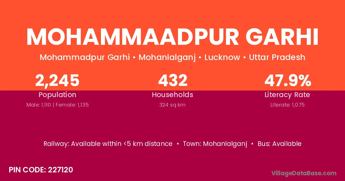 Mohanlalganj is the nearest town to Mohammaadpur Garhi village for major economic activities