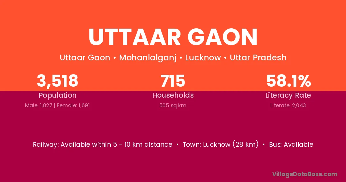 Uttaar Gaon village has a total population of 3,518 people, of which 1,827 are males and 1,691 are females.