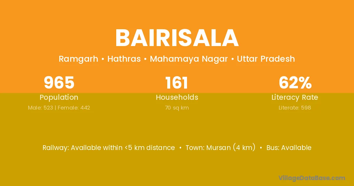 Mursan (4 km) is the nearest town to Bairisala village for major economic activities and is located approximately 4 km away.