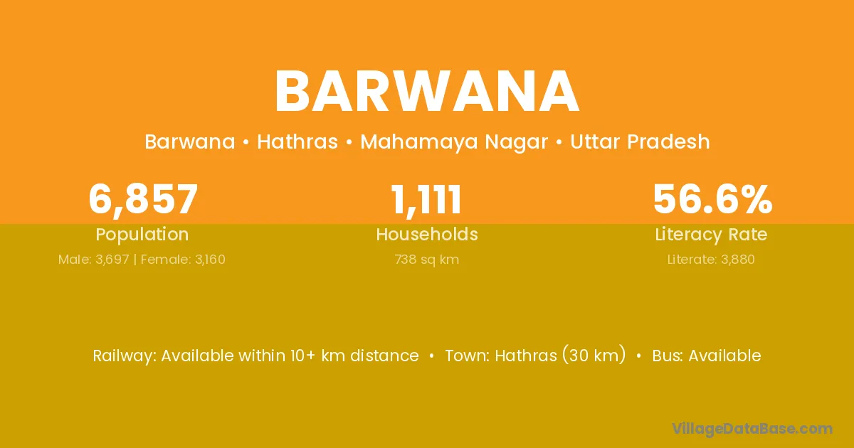 Hathras (30 km) is the nearest town to Barwana village for major economic activities and is located approximately 30 km away.