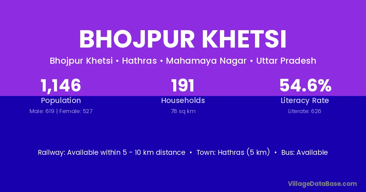 Hathras (5 km) is the nearest town to Bhojpur Khetsi village for major economic activities and is located approximately 5 km away.