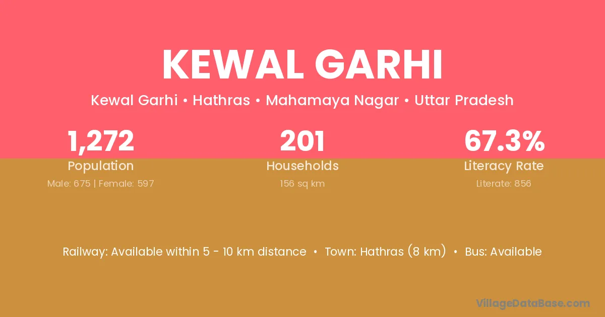 Hathras (8 km) is the nearest town to Kewal Garhi village for major economic activities and is located approximately 8 km away.