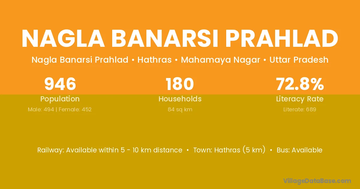 Nagla Banarsi Prahlad village has a total population of 946 people, of which 494 are males and 452 are females.