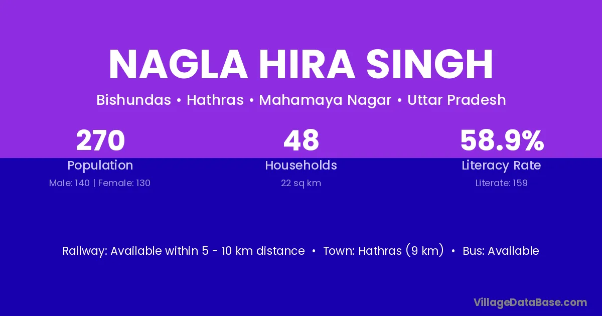 Nagla Hira Singh village has a total population of 270 people, of which 140 are males and 130 are females.