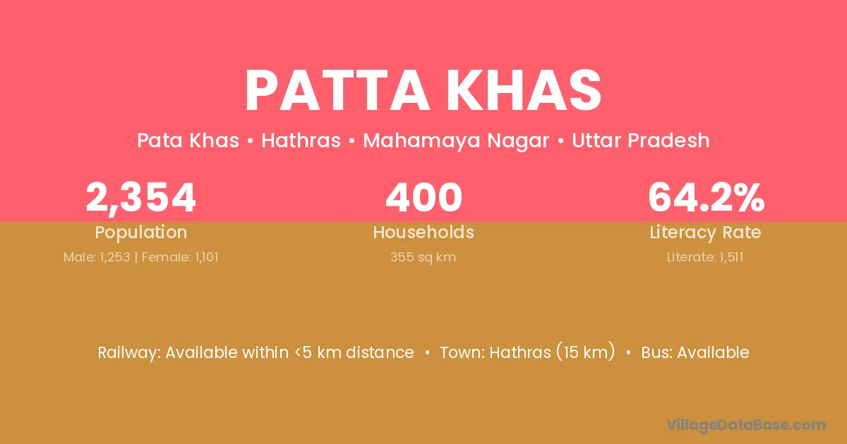 Hathras (15 km) is the nearest town to Patta Khas village for major economic activities and is located approximately 15 km away.