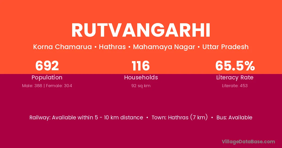 Hathras (7 km) is the nearest town to Rutvangarhi village for major economic activities and is located approximately 7 km away.