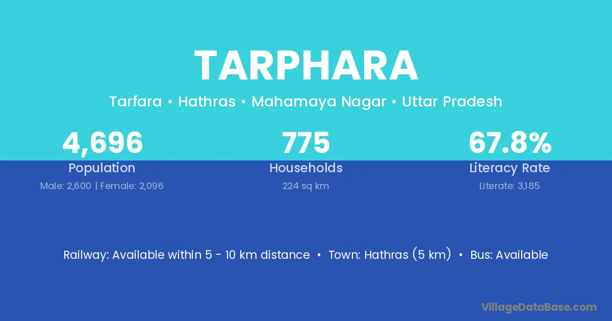 Hathras (5 km) is the nearest town to Tarphara village for major economic activities and is located approximately 5 km away.