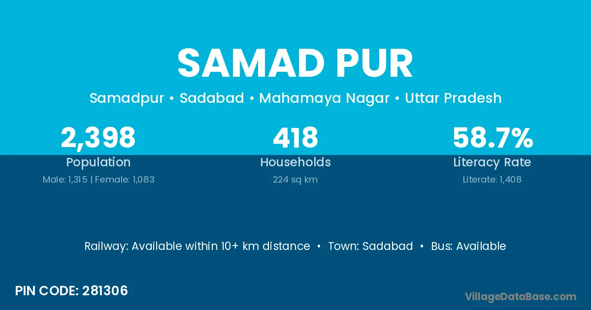 Sadabad is the nearest town to Samad Pur village for major economic activities