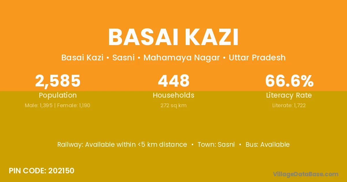 Sasni is the nearest town to Basai Kazi village for major economic activities