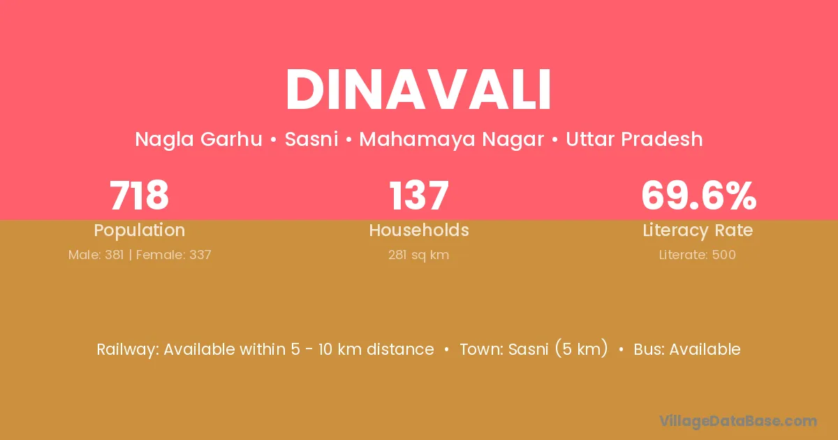 Sasni (5 km) is the nearest town to Dinavali village for major economic activities and is located approximately 5 km away.
