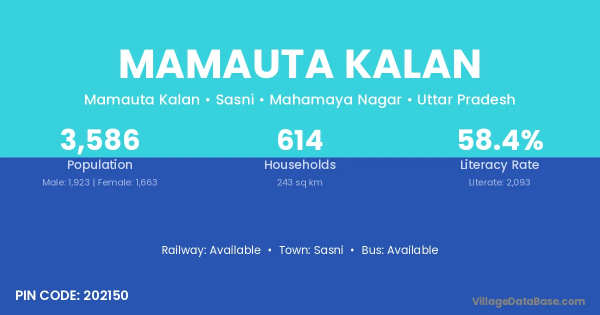 Mamauta Kalan village has a total population of 3,586 people, of which 1,923 are males and 1,663 are females.