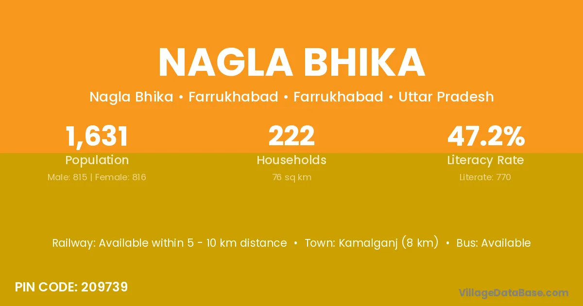 Sasni (10 km) is the nearest town to Nagla Bhika village for major economic activities and is located approximately 10 km away.