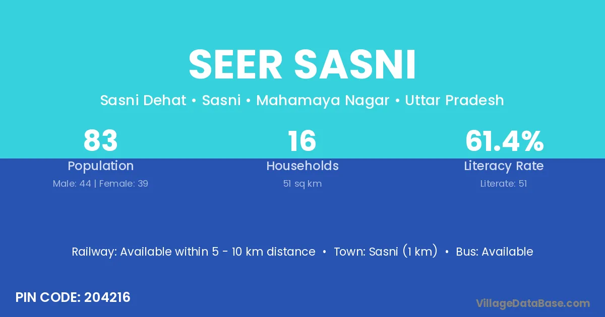 Sasni (1 km) is the nearest town to Seer Sasni village for major economic activities and is located approximately 1 km away.