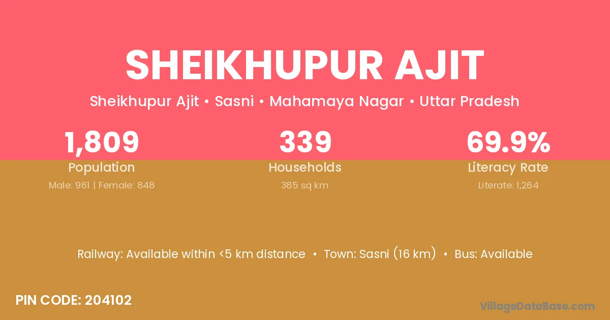 Sasni (16 km) is the nearest town to Sheikhupur Ajit village for major economic activities and is located approximately 16 km away.