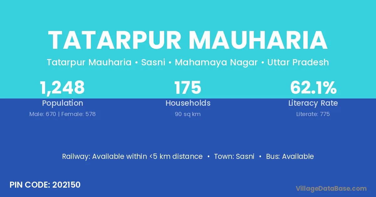 Tatarpur Mauharia village has a total population of 1,248 people, of which 670 are males and 578 are females.