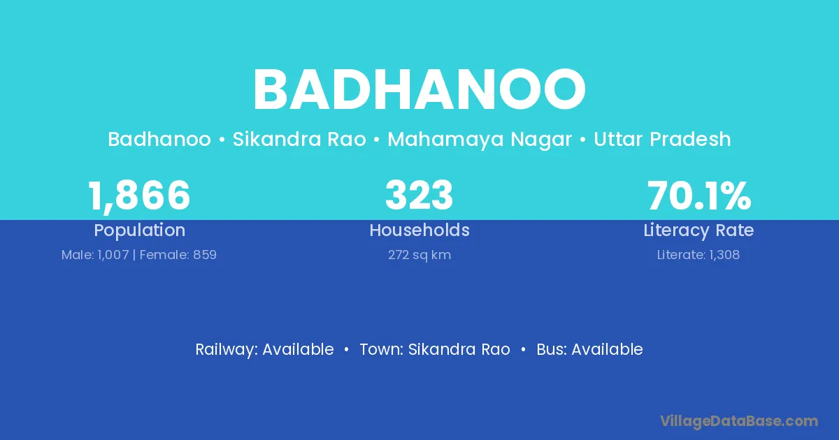 Sikandra Rao is the nearest town to Badhanoo village for major economic activities