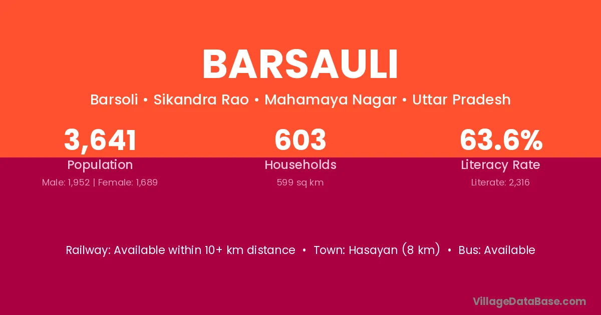 Barsauli village is located in the Sikandra Rao Tehsil of the Mahamaya Nagar district in Uttar Pradesh .