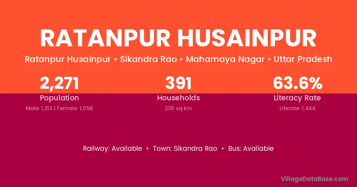 Sikandra Rao is the nearest town to Ratanpur Husainpur village for major economic activities