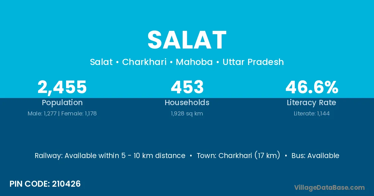 Charkhari (17 km) is the nearest town to Salat village for major economic activities and is located approximately 17 km away.