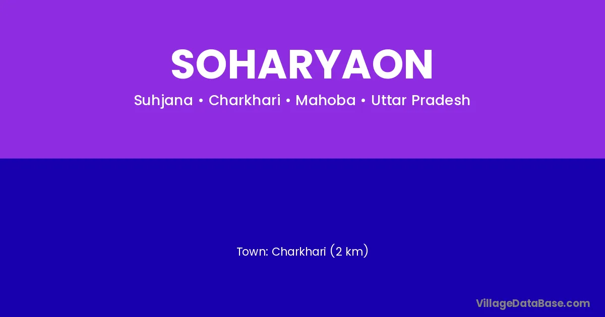 Charkhari (2 km) is the nearest town to Soharyaon village for major economic activities and is located approximately 2 km away.