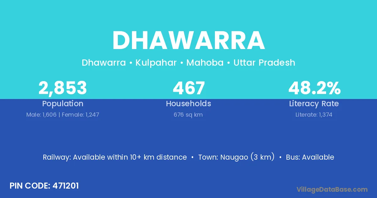 Dhawarra village has a total population of 2,853 people, of which 1,606 are males and 1,247 are females.