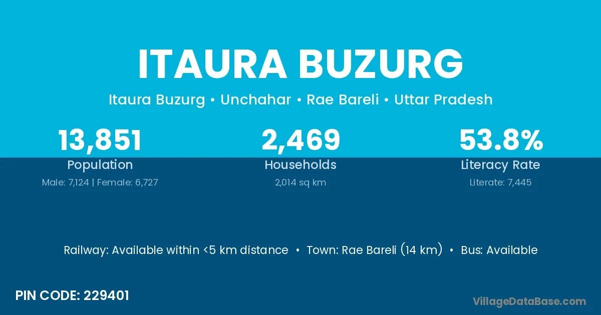 Itaura Buzurg village has a total population of 1,190 people, of which 639 are males and 551 are females.