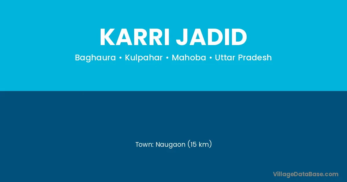 Naugaon (15 km) is the nearest town to Karri Jadid village for major economic activities and is located approximately 15 km away.