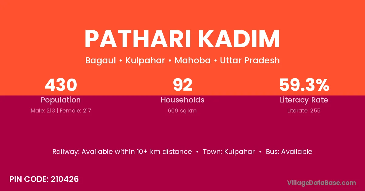 Pathari Kadim village has a total population of 430 people, of which 213 are males and 217 are females.