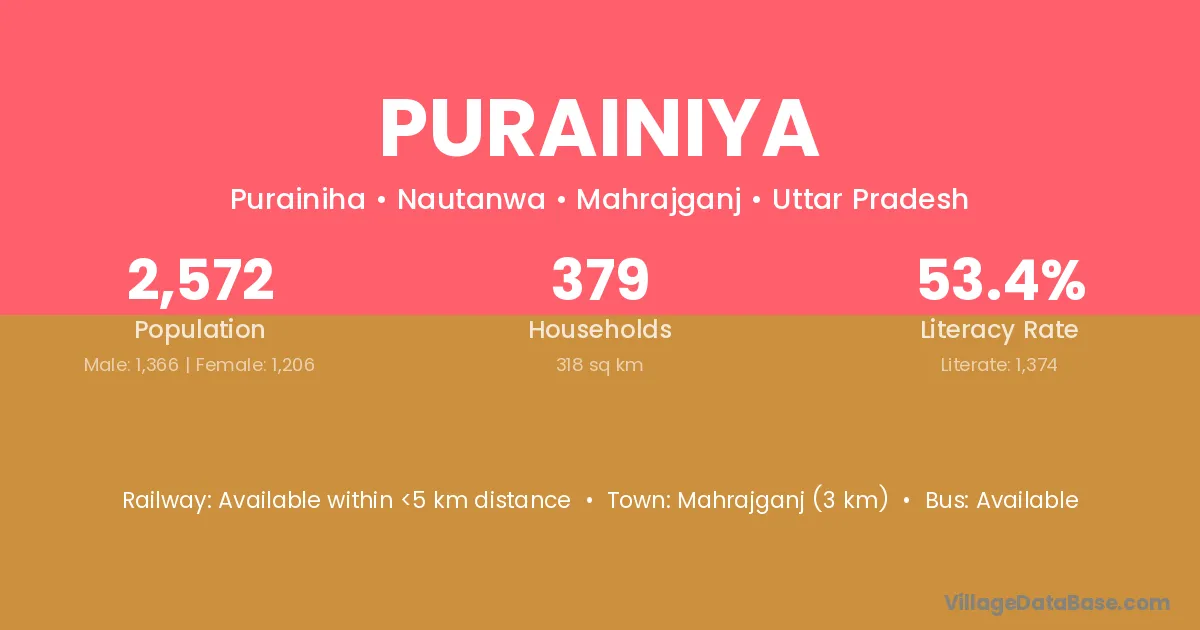 Kulpahar is the nearest town to Purainiya village for major economic activities