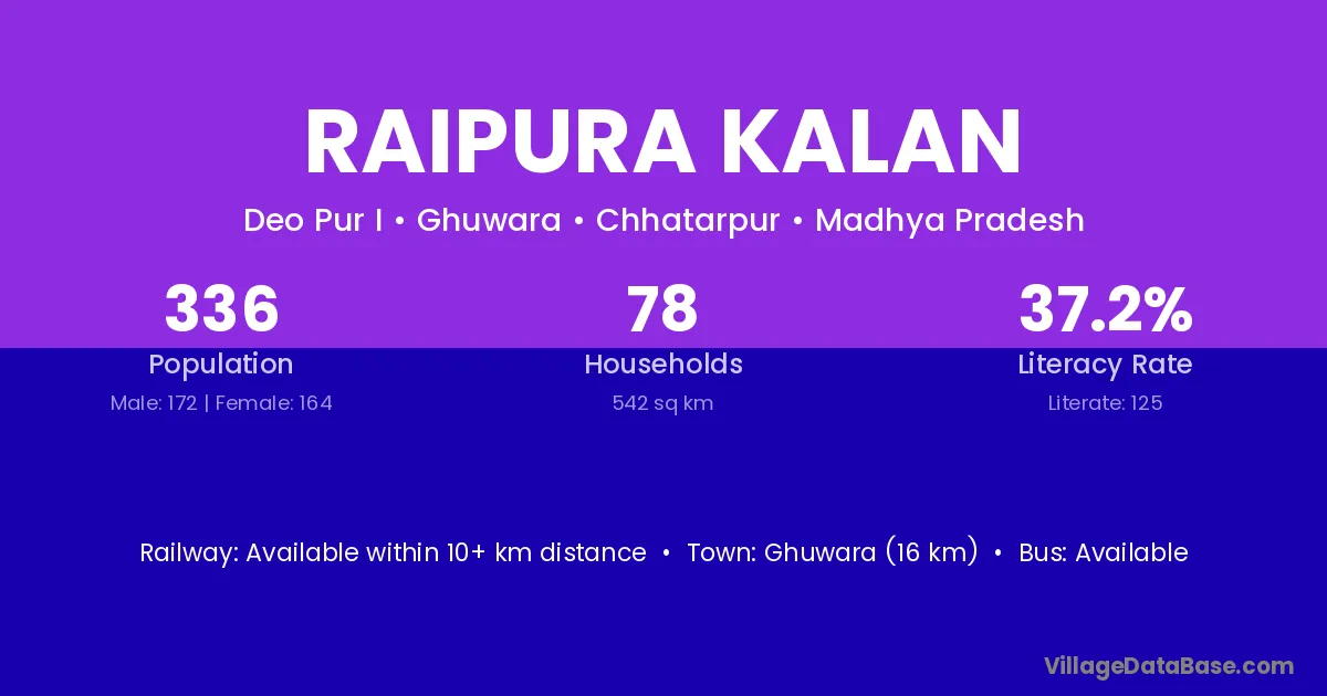 Jaitpur (16 km) is the nearest town to Raipura Kalan village for major economic activities and is located approximately 16 km away.